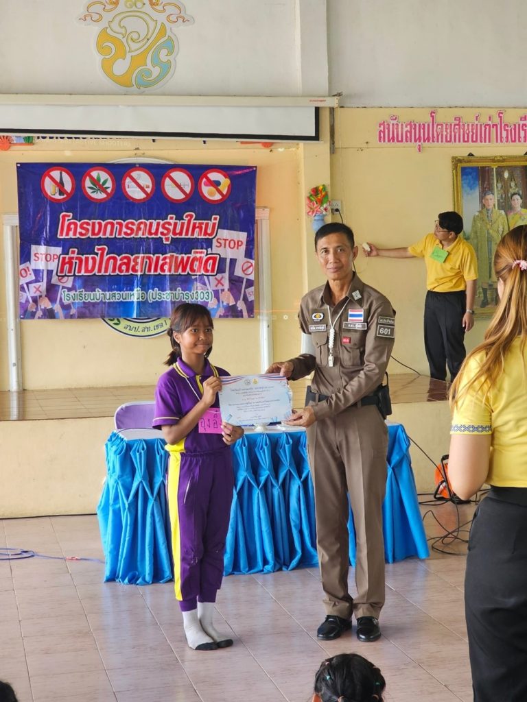 เมื่อวันที่ 24 ธันวาคม 2567 เวลา 13.30 น.ร.ต.ต.ครรชิต การสมมุติ รอง.สว.ป. สภ.บ้านสวนพร้อมด้วย สายตรวจจราจร ได้มาให้คำแนะนำให้ความรู้เด็กนักเรียนและผู้ปกครองในเรื่อง 1.เรื่องความปลอดภัยและวินัยจราจร 2.เรื่องโทษของยาเสพติด3.เรื่องความปลอดภัย “หนี ซ่อน สู้”ณ ตำบลบ้านสวน