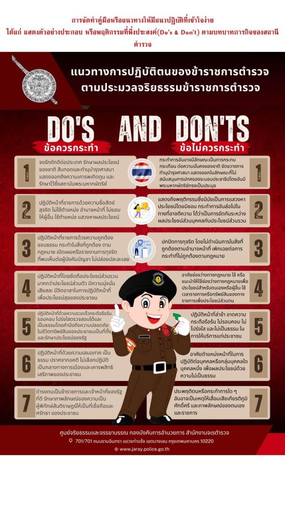 การจัดทำคู่มือหรือแนวทางการปฏิบัติตามมาตรฐานทางจริยธรรม ของสถานีตำรวจ