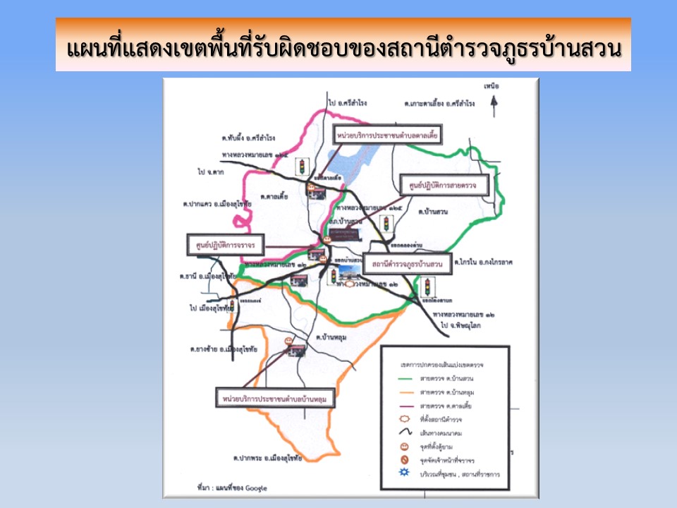 – ทิศเหนือ ติดต่อ ต.เกาะตาเลี้ยง อ.ศรีสำโรง จ.สุโขทัย ระหว่างหลัก กม.ที่ 8 – 9